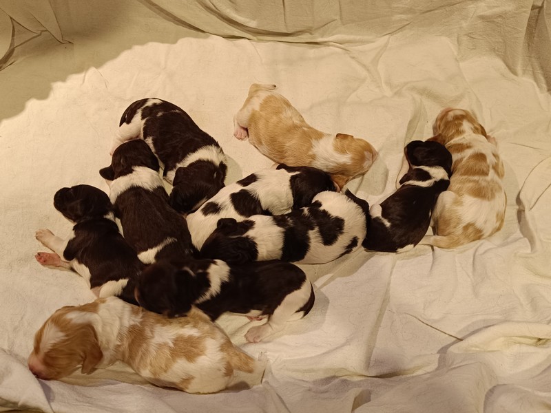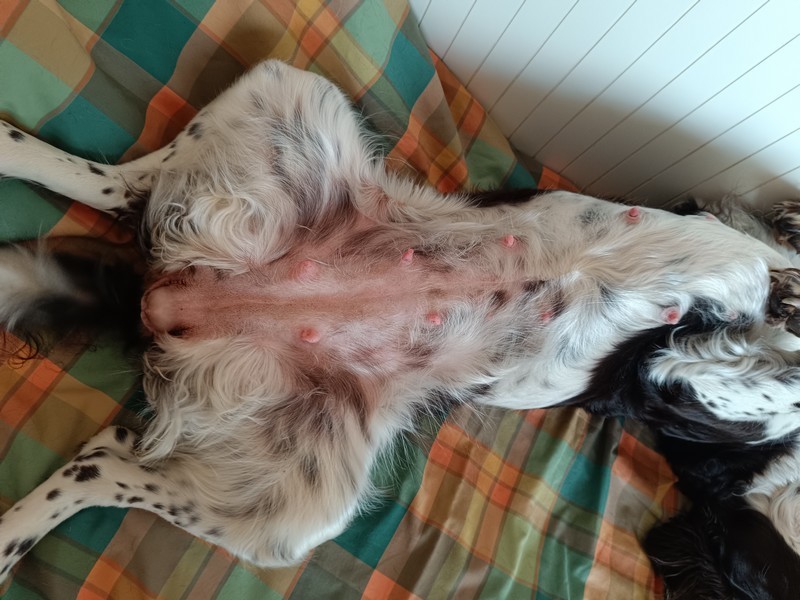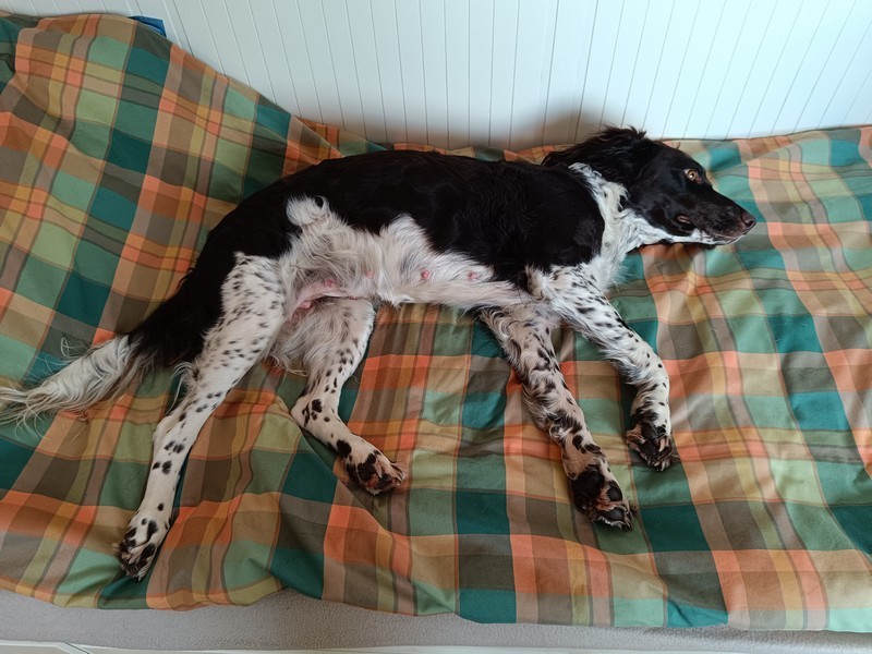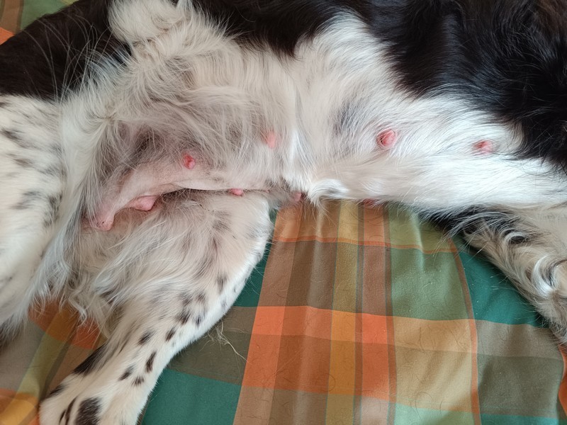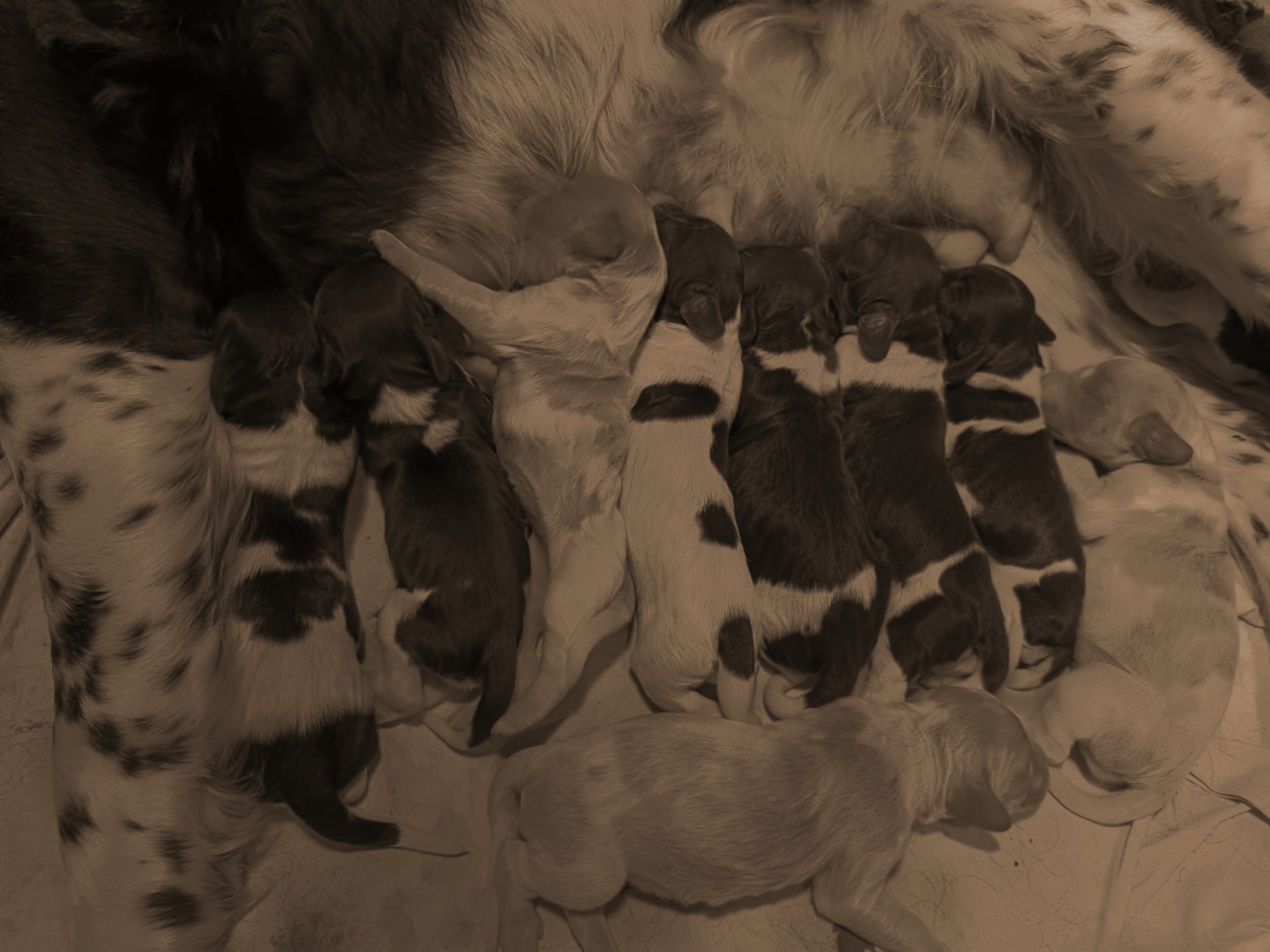 während die Welpen längst wieder in der Wurfkiste liegen.