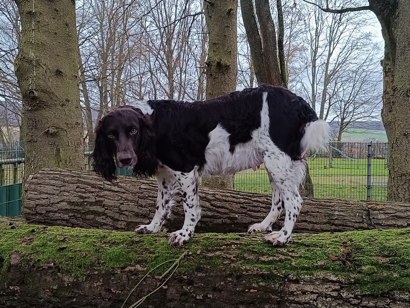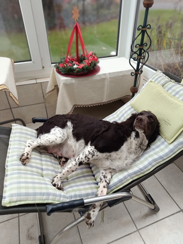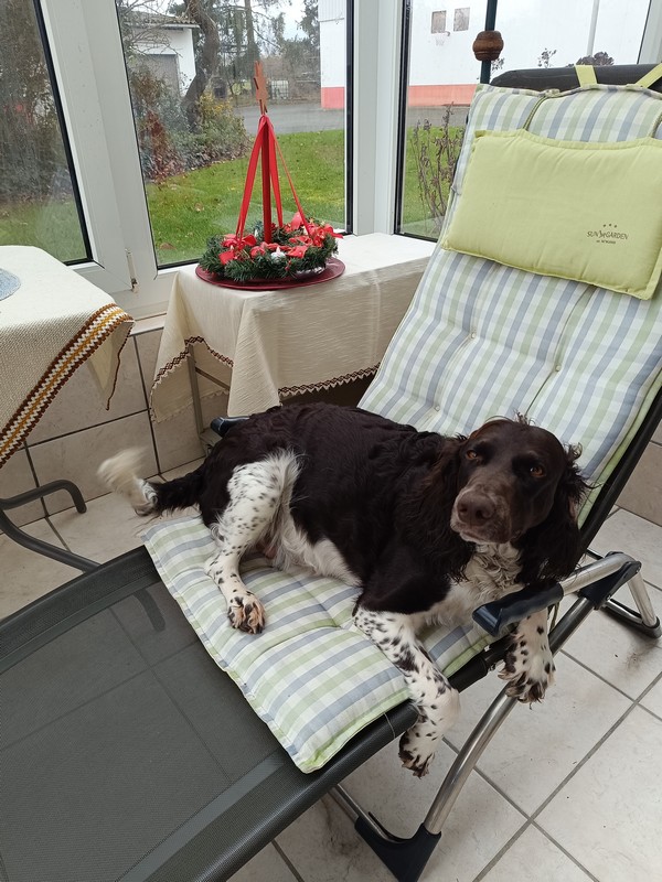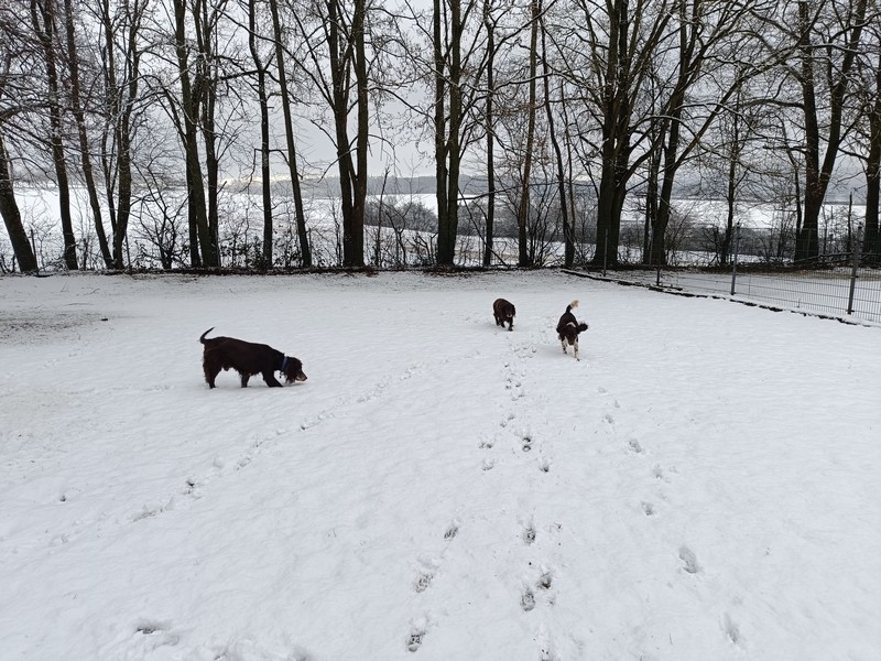 Nach dem Wintergewitter gehen wir noch mal raus. Jetzt läuft Ayka auf Fingerzeig die Rampe rauf und runter und nochmal und nochmal – dann stupst sie mich an: „wo bleibt die Leberwurst?“