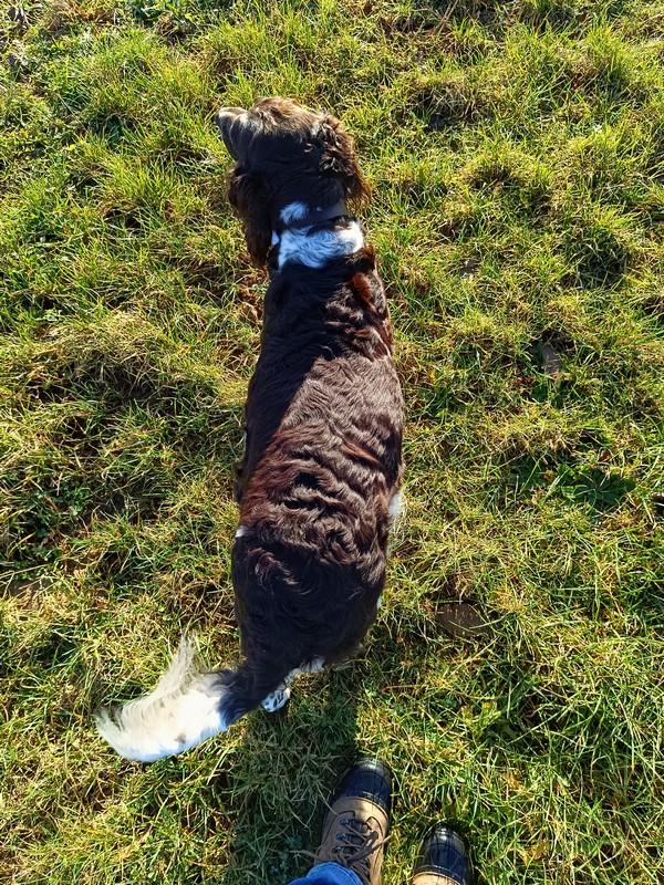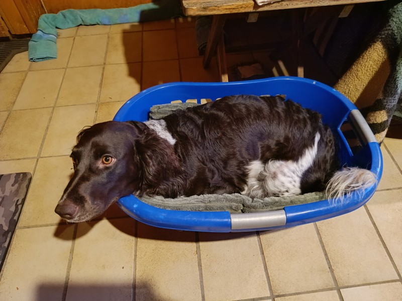 Ayka ist zur Zeit besonders anhänglich, wehe sie weiss nicht wo ich bin und am liebsten möchte sie auch immer mitfahren. Nur im Revierauto wird das langsam ein Problem, da sie nicht mehr so hoch springen soll und hochheben ist alleine auch nicht optimal.