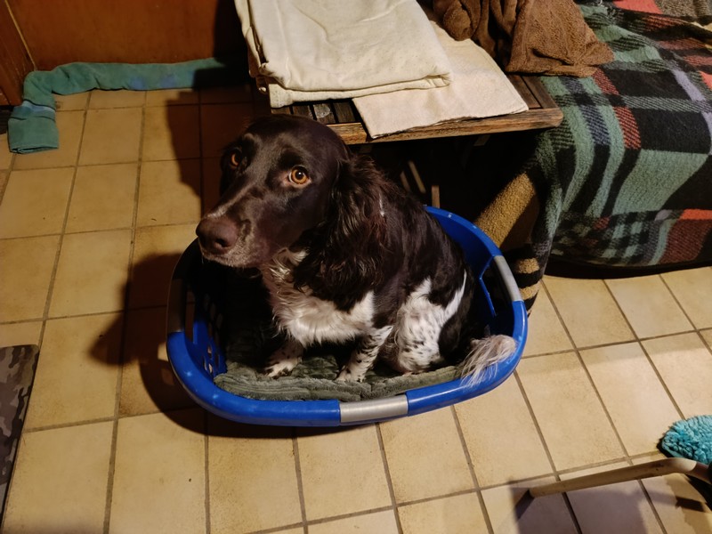 Wenn sie morgen mitfahren will, müssen wir die Hunderampe auspacken. Beim ersten Test zeigt sich Ayka beratungsresistent. „ICH GEHE DA NICHT HOCH !!!“ Mit Ziehen und Schieben kommt sie nach oben – mehr schlecht als recht.