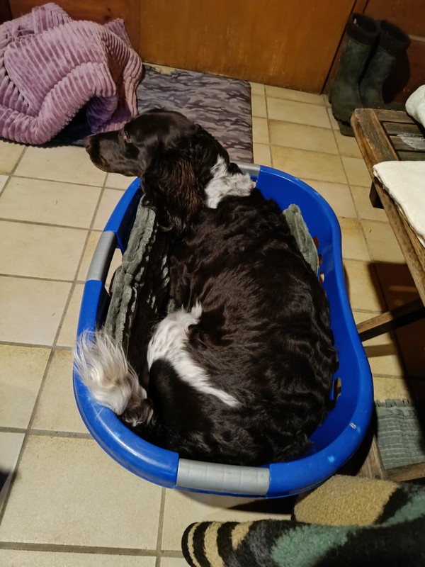 Jetzt muss die Rampe nur noch über Nacht vor der Heizung trocknen, dann darf Ayka auch morgen mitfahren in den Wald.
