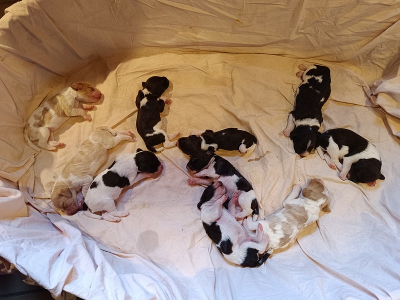 diesmal sind sie zum Schlafen etwas lockerer in der Wurfkiste verteilt, damit man sie besser erkennen kann