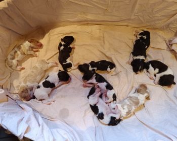 Nun sind die Welpen bereits eine Woche alt und haben kontinuierlich zugenommen. Bisher haben sie nur mittels Tastsinn und auf Wärme reagiert. Die Stehohren klappen jetzt um, die Gehörgänge öffnen sich. Bald können die Welpen Geräusche wahrnehmen. Die bei der Geburt rosa Nasen beginnen jetzt dunkel zu werden und auf…
