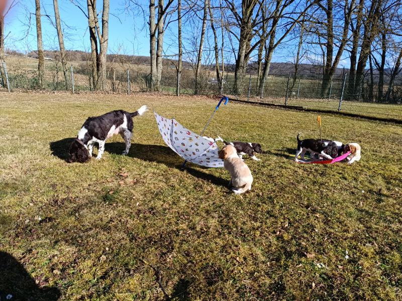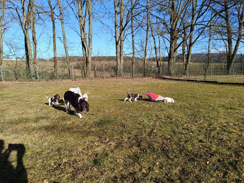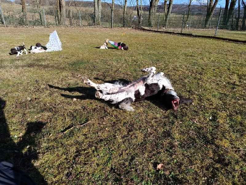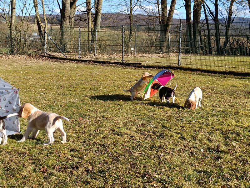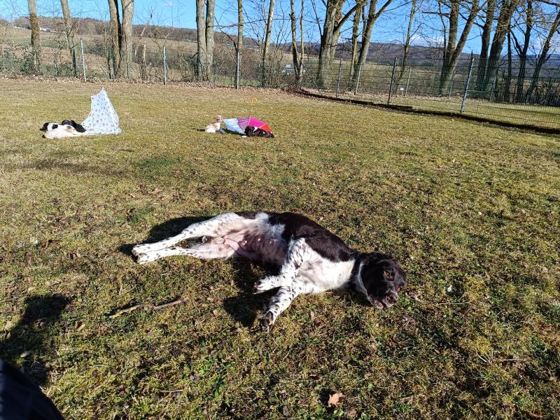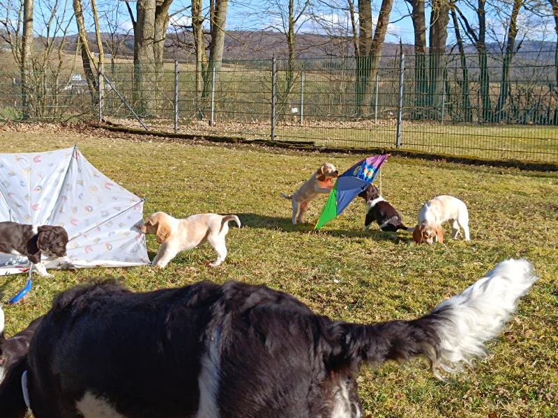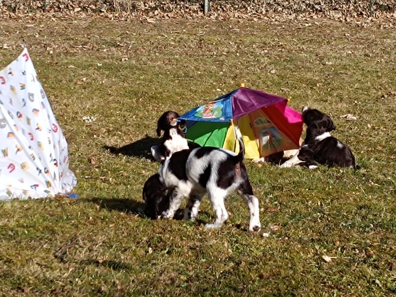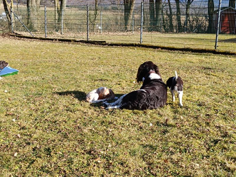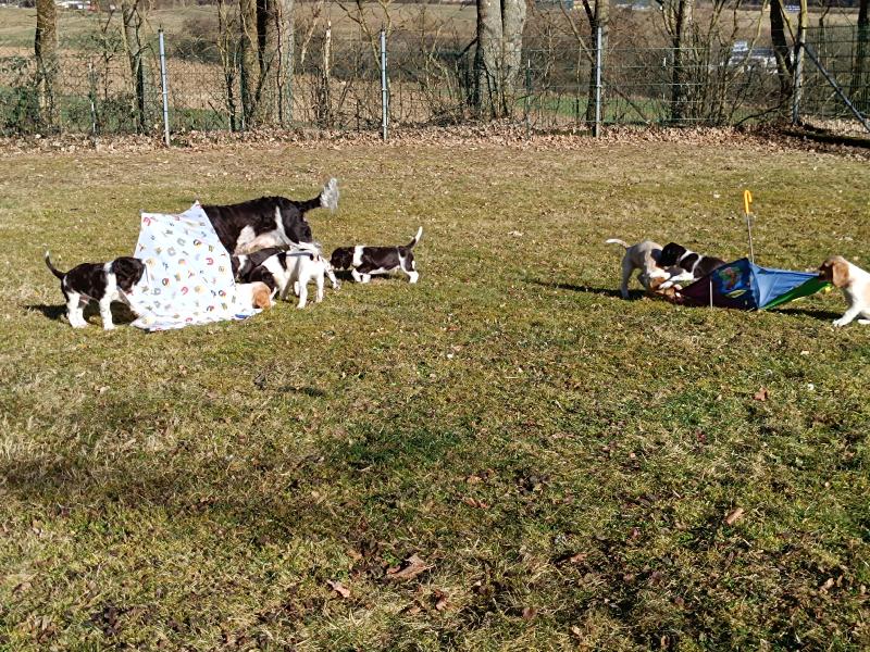 Die Welpen sind beschäftigt und Mama Ayka kann relaxen.