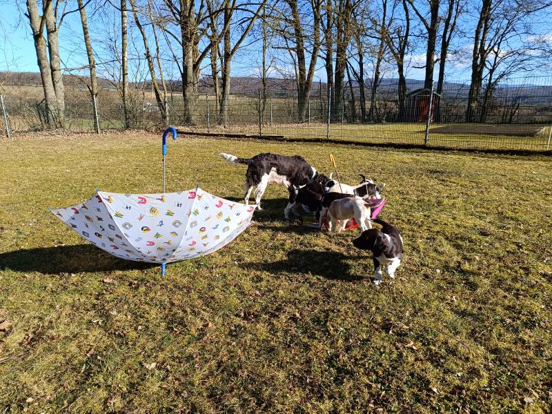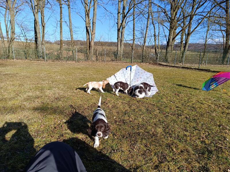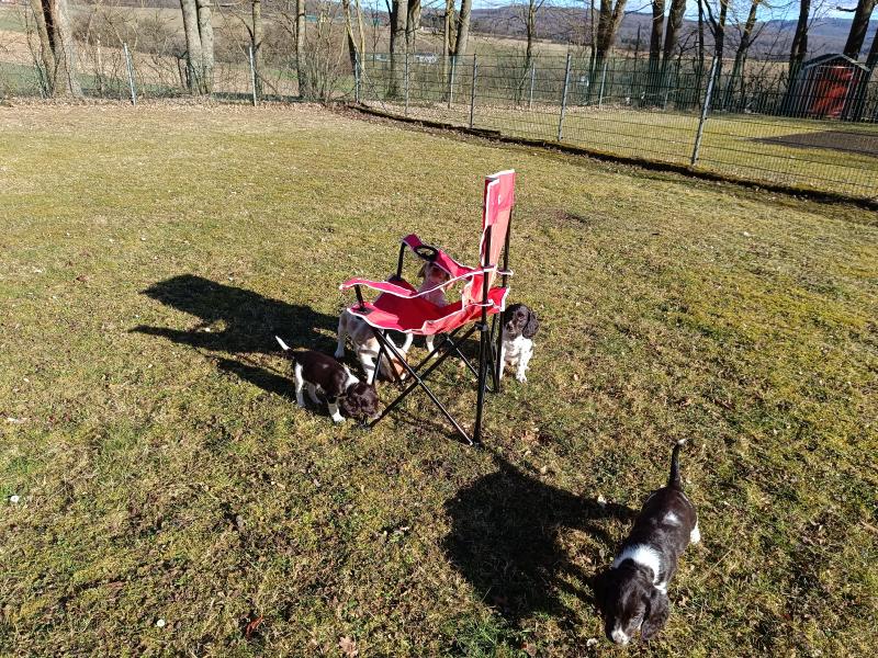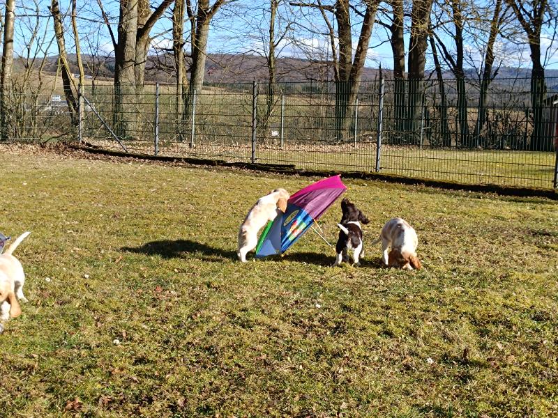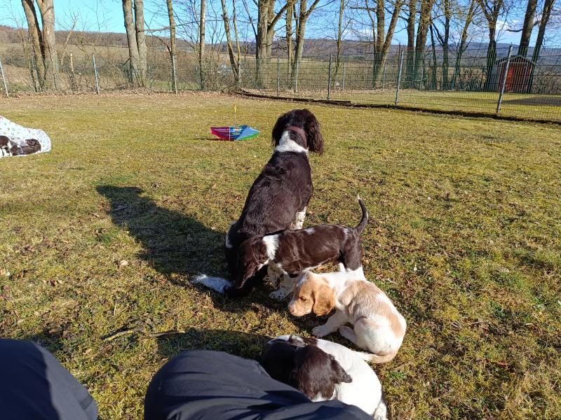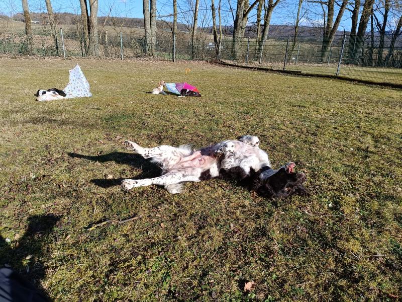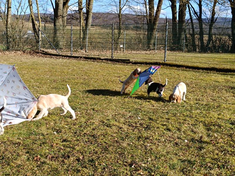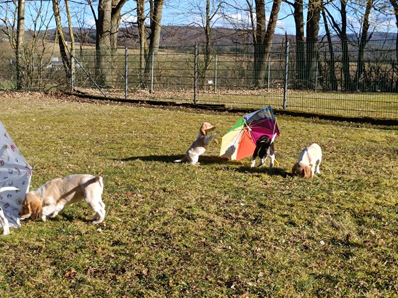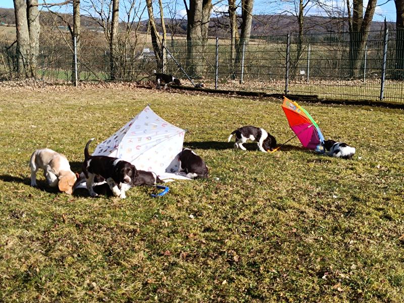 Die Welpen sind beschäftigt und Mama Ayka kann relaxen.