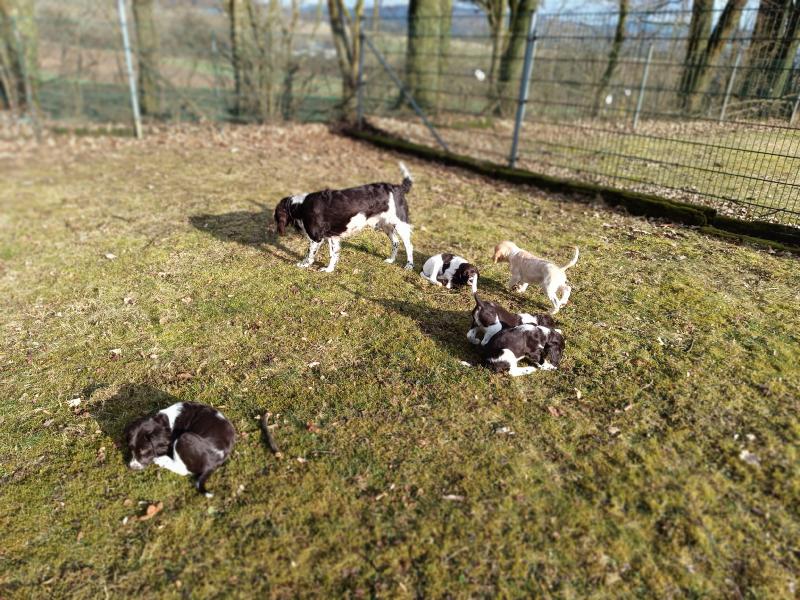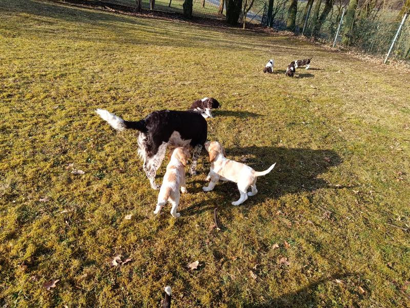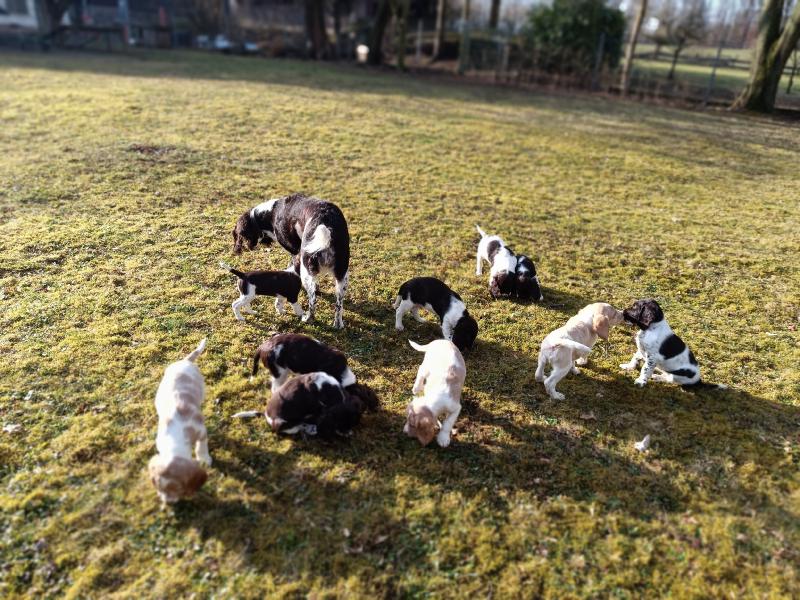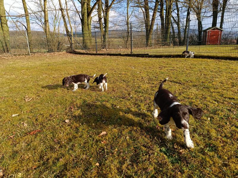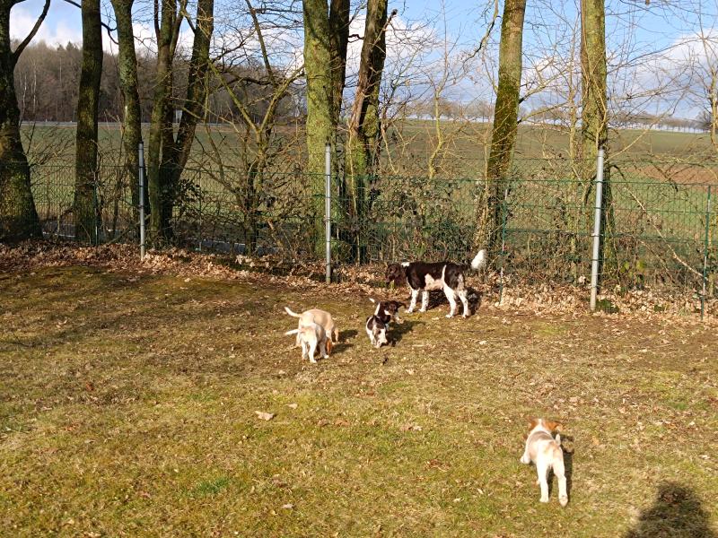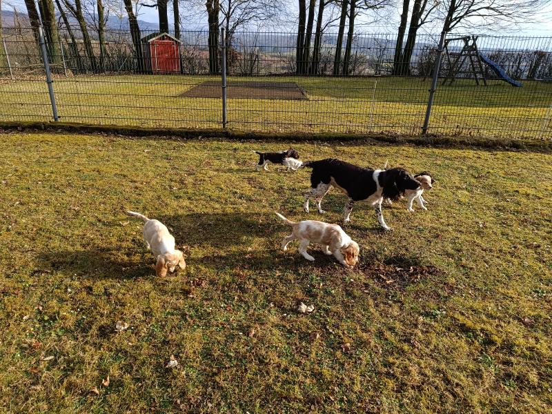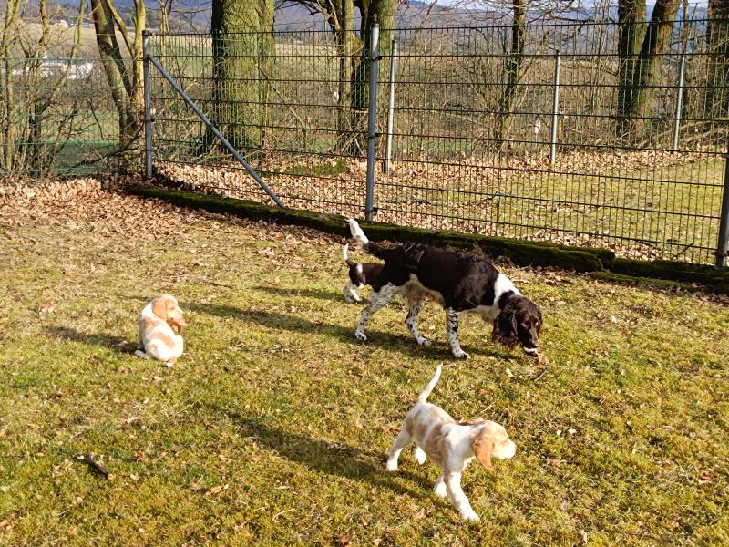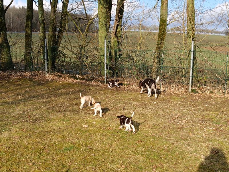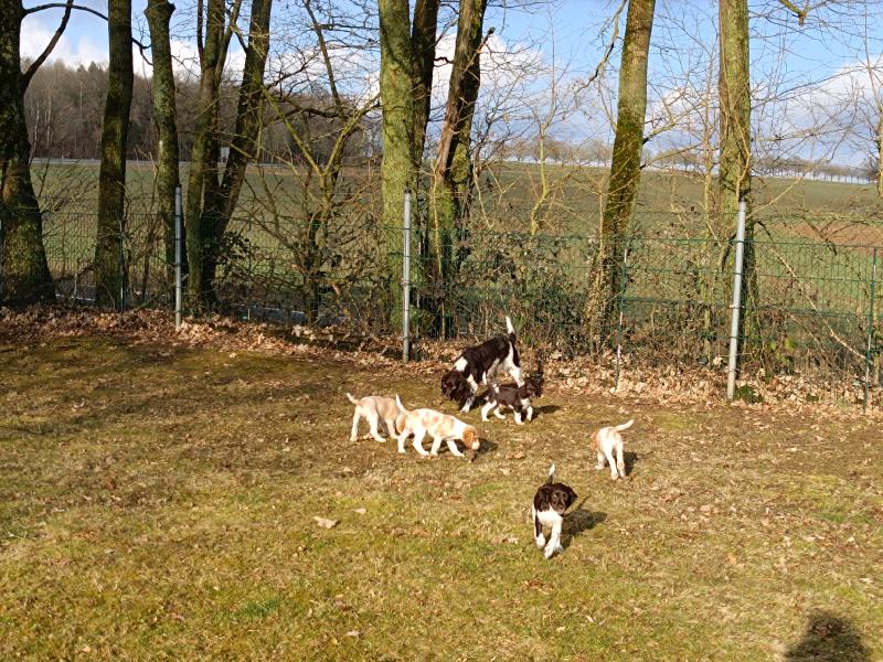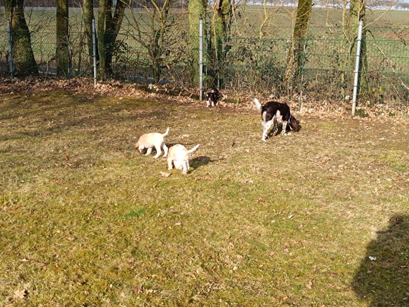 Die Welpen warten schon darauf, wenn sie mit Ayka in den grossen Garten ausschwärmen dürfen. Wenn das Tor aufgeht, rennen alle los.