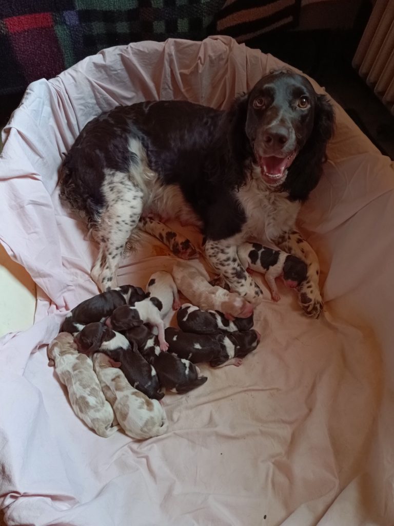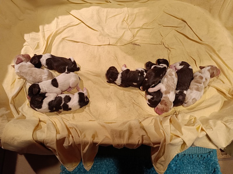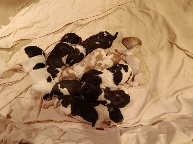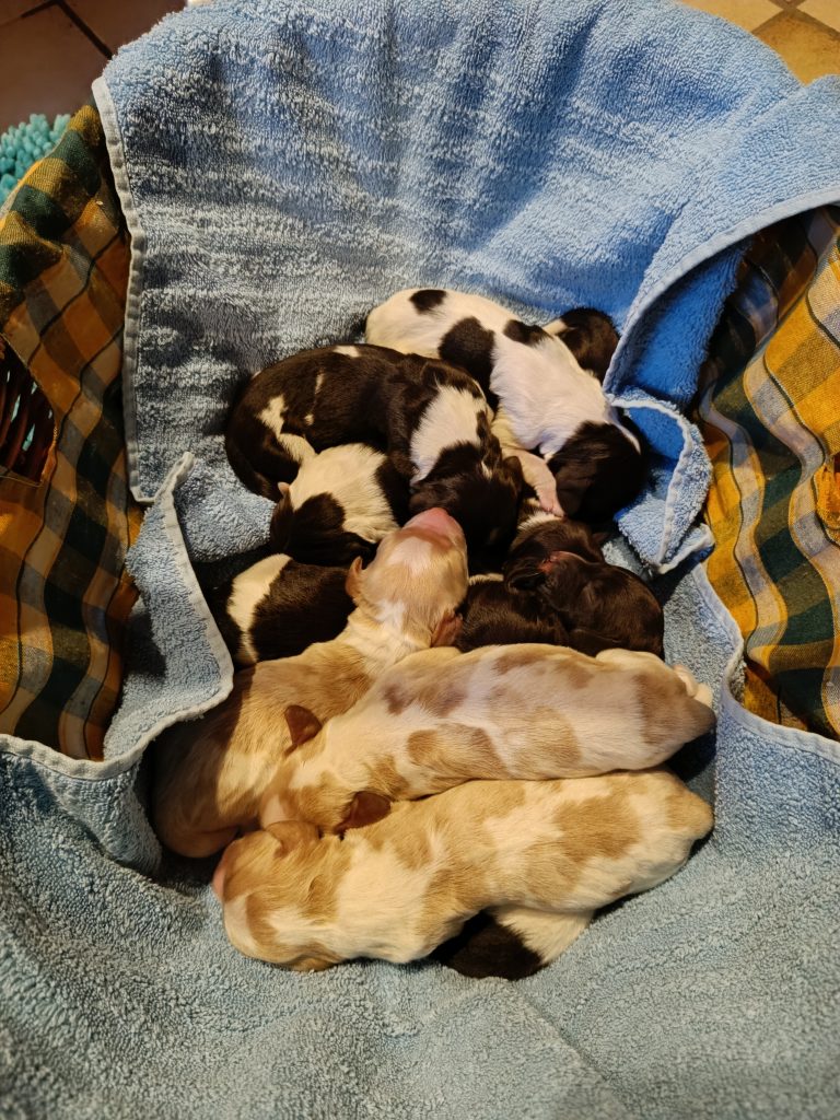 diesmal sind sie zum Schlafen etwas lockerer in der Wurfkiste verteilt, damit man sie besser erkennen kann