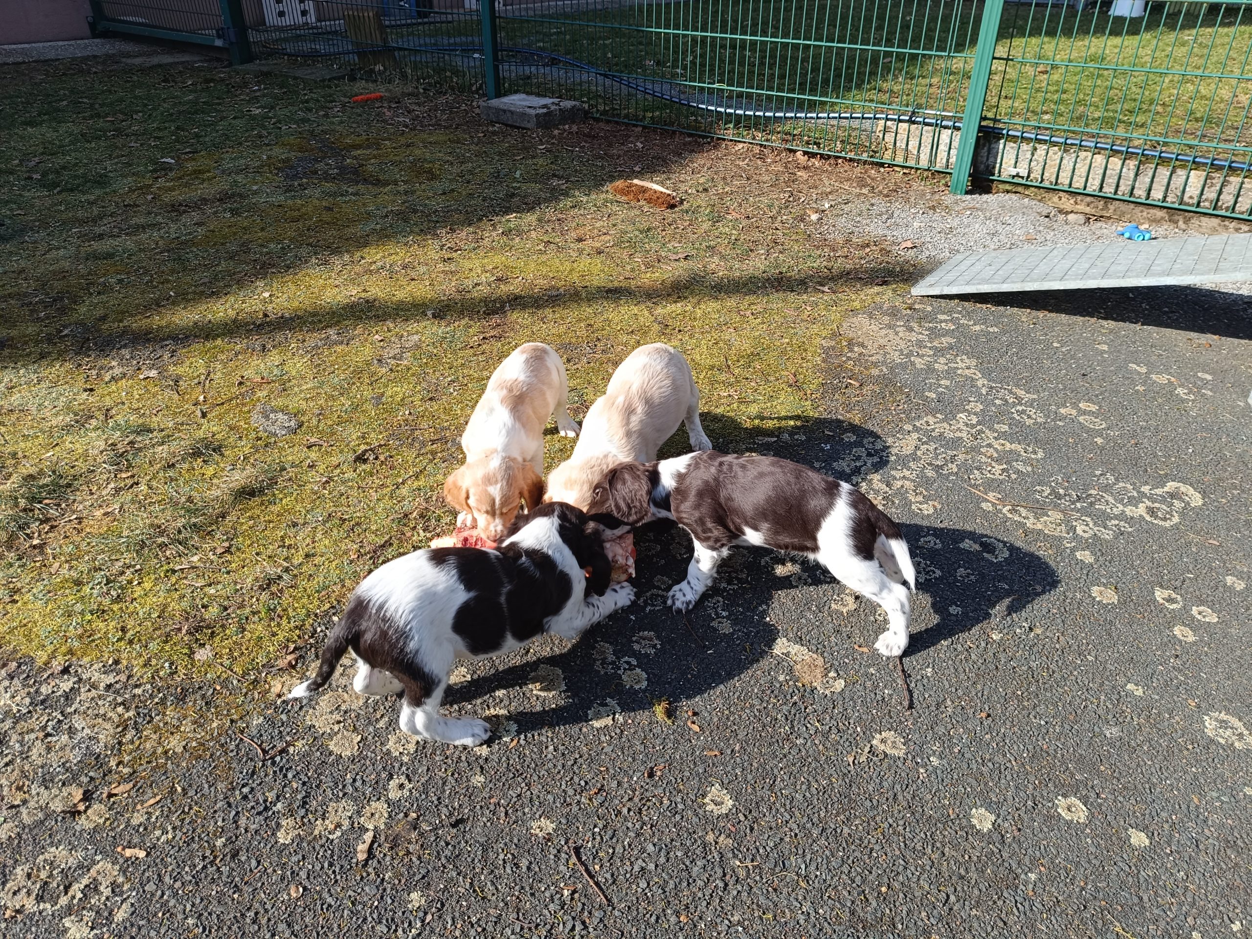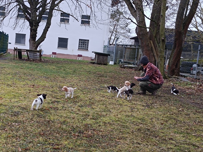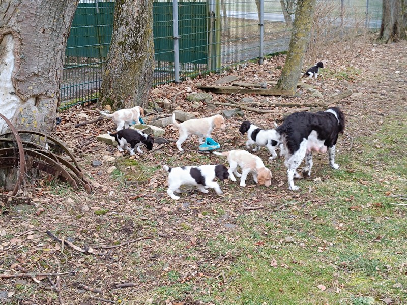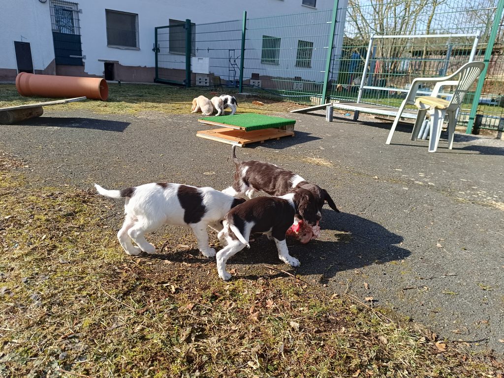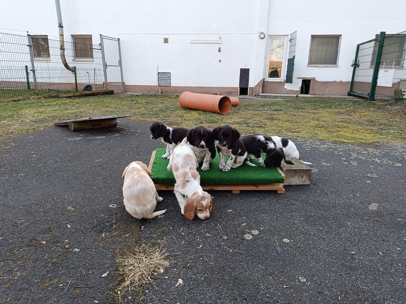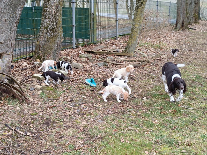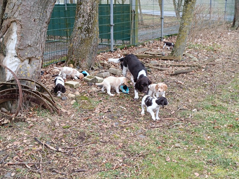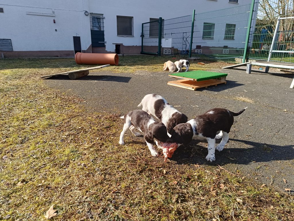 Heute sind die Welpen 7 Wochen alt geworden und Papa Zaron kam zu Besuch.