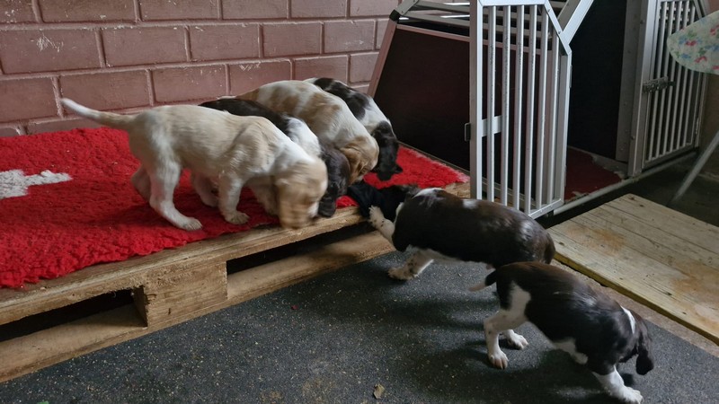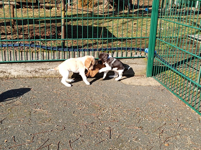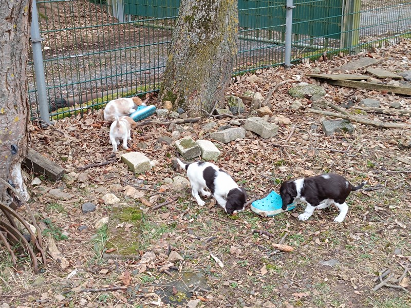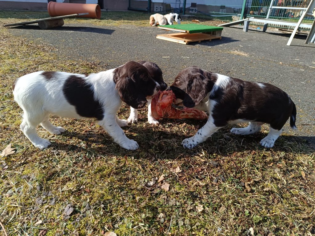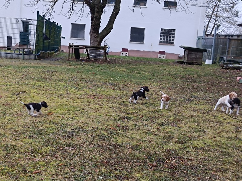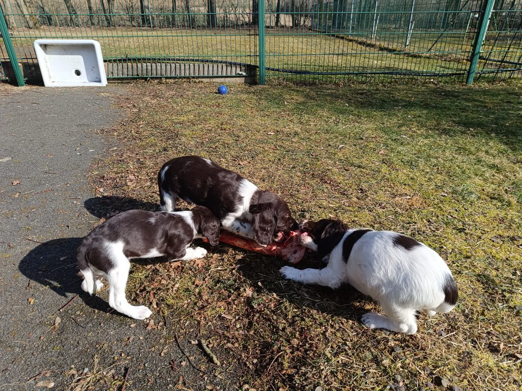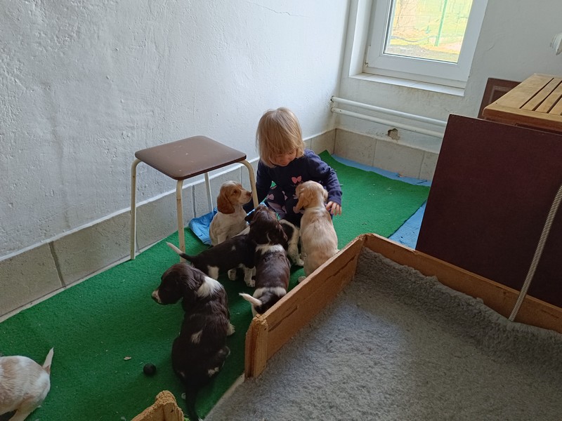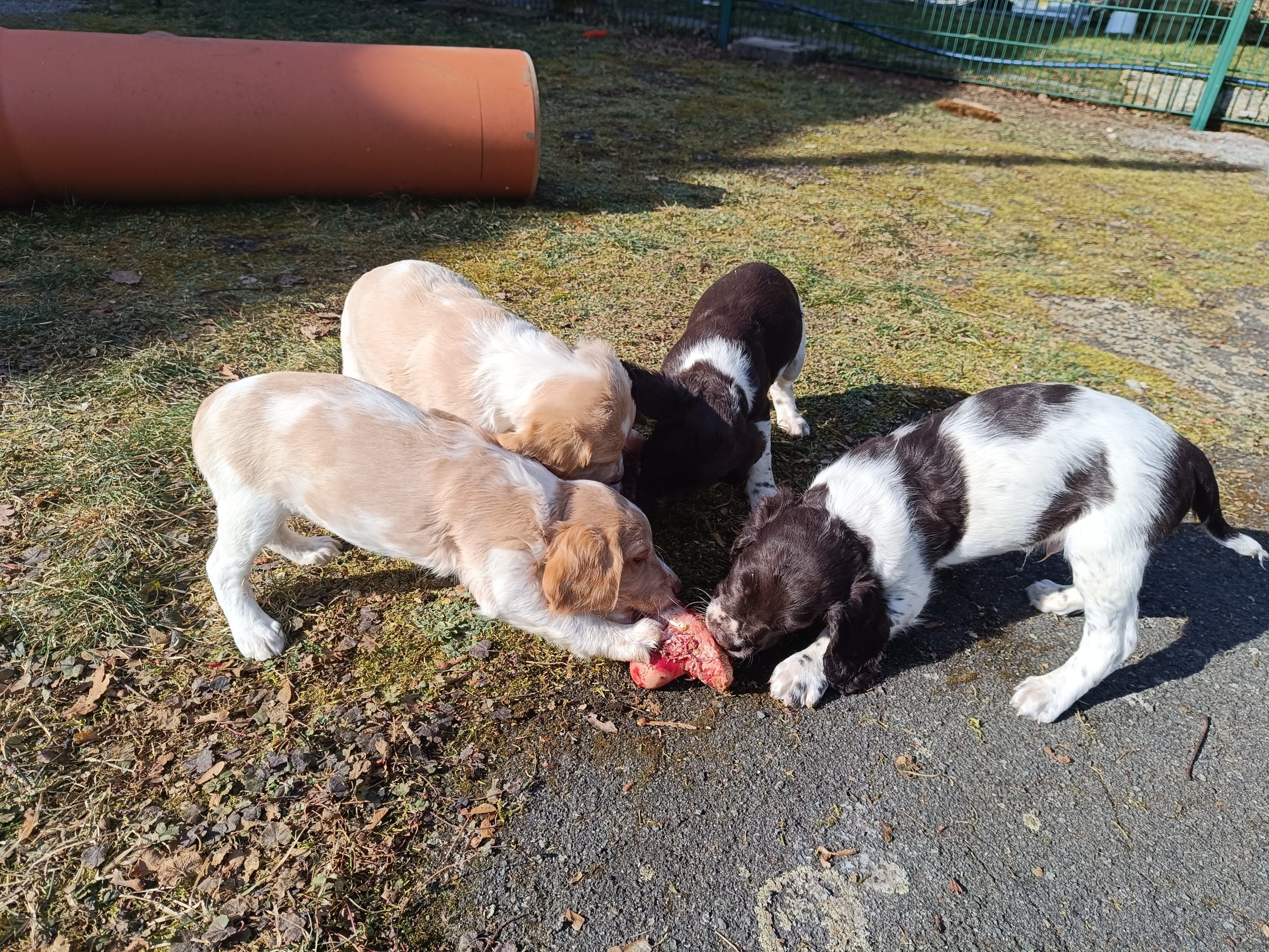 Heute sind die Welpen 7 Wochen alt geworden und Papa Zaron kam zu Besuch.