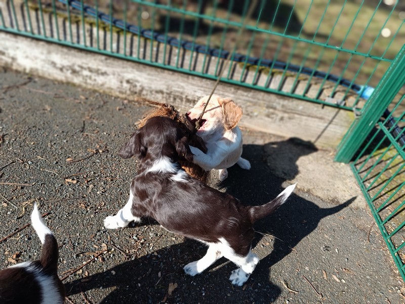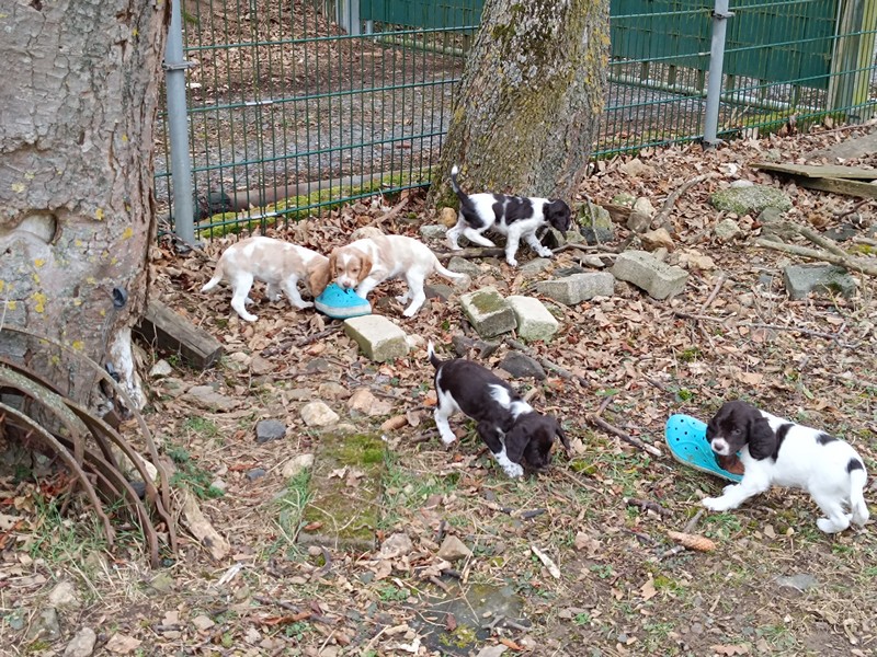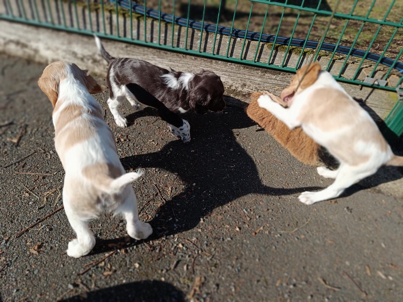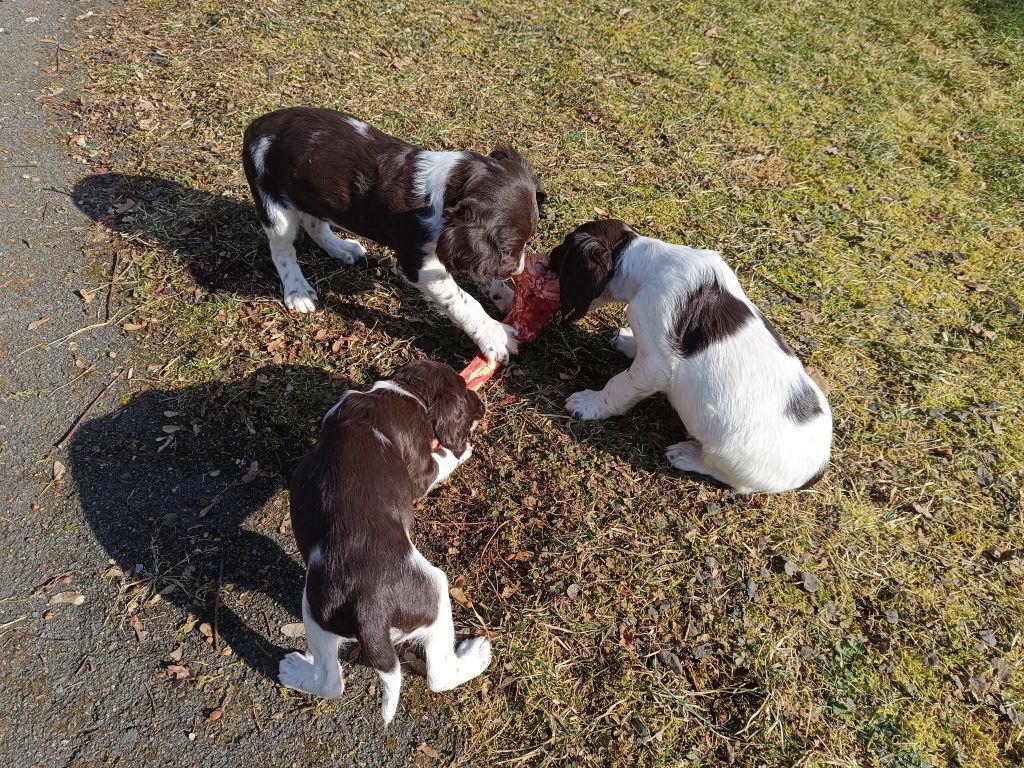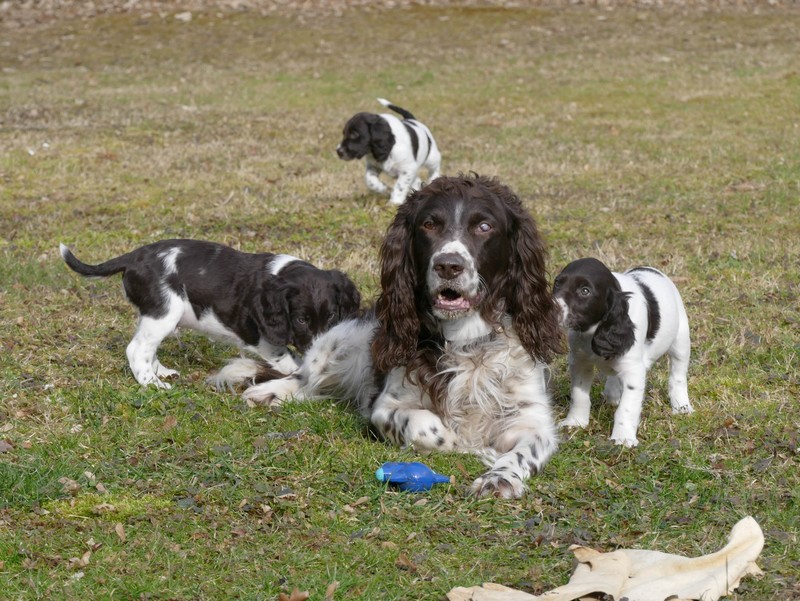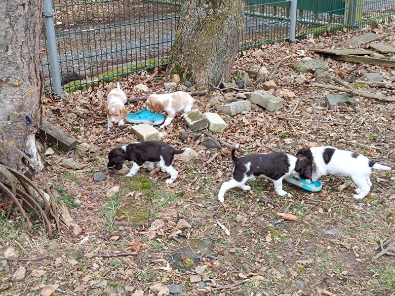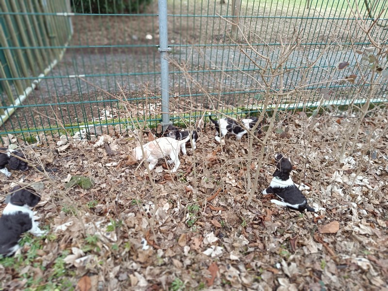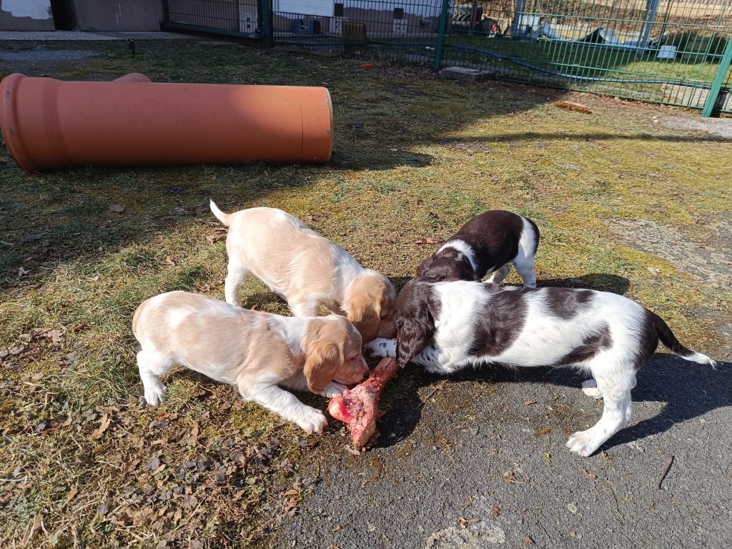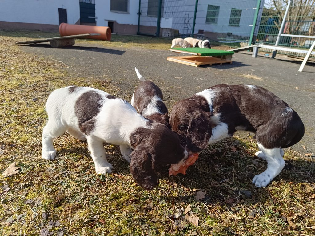 Heute sind die Welpen 7 Wochen alt geworden und Papa Zaron kam zu Besuch.