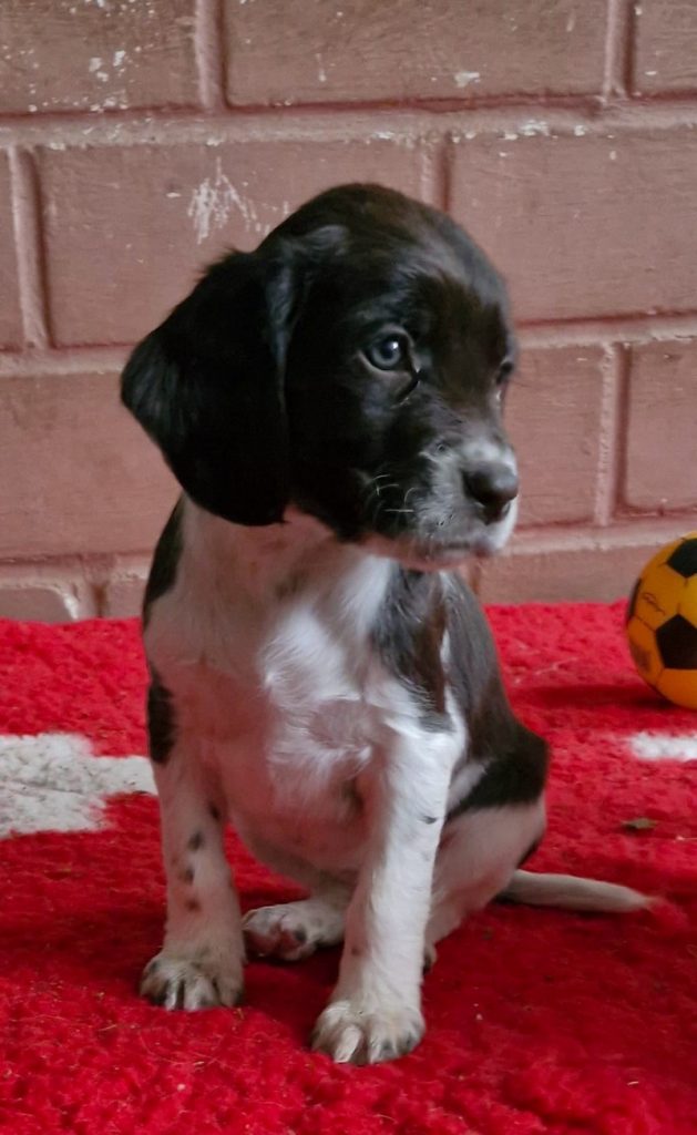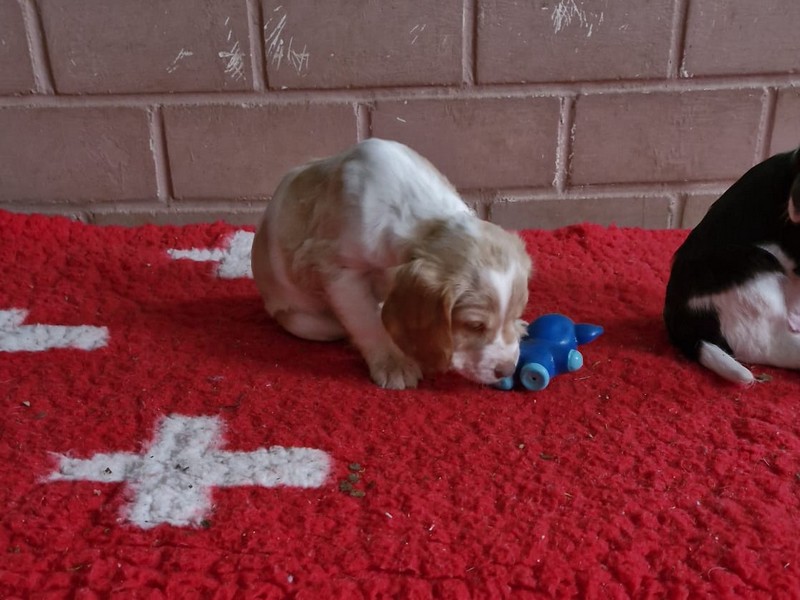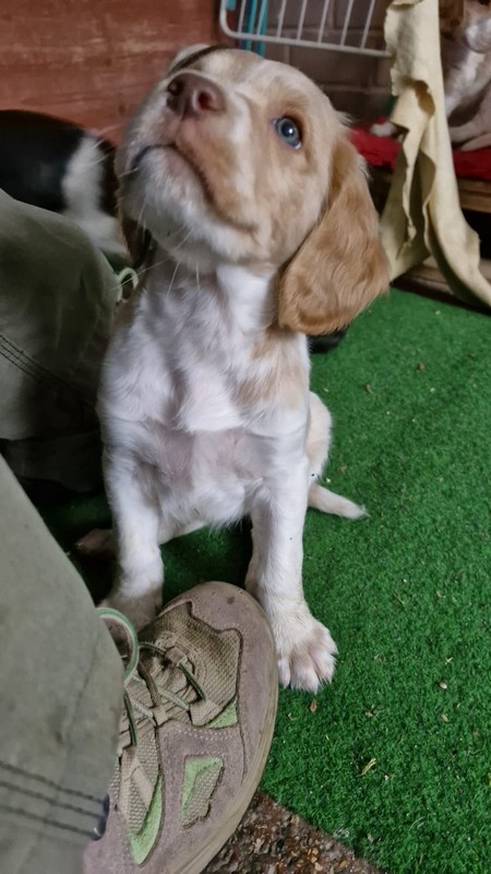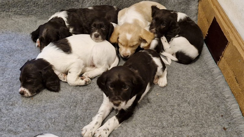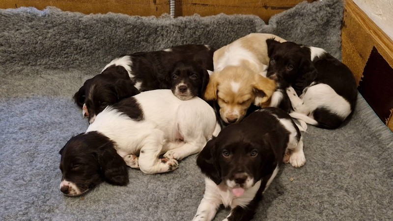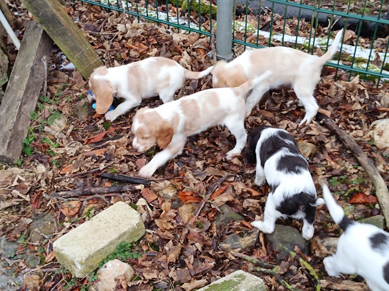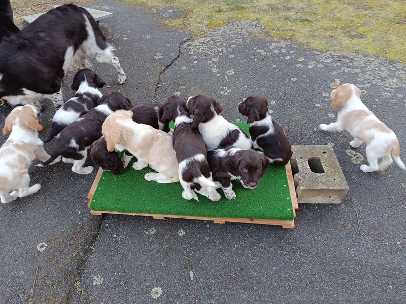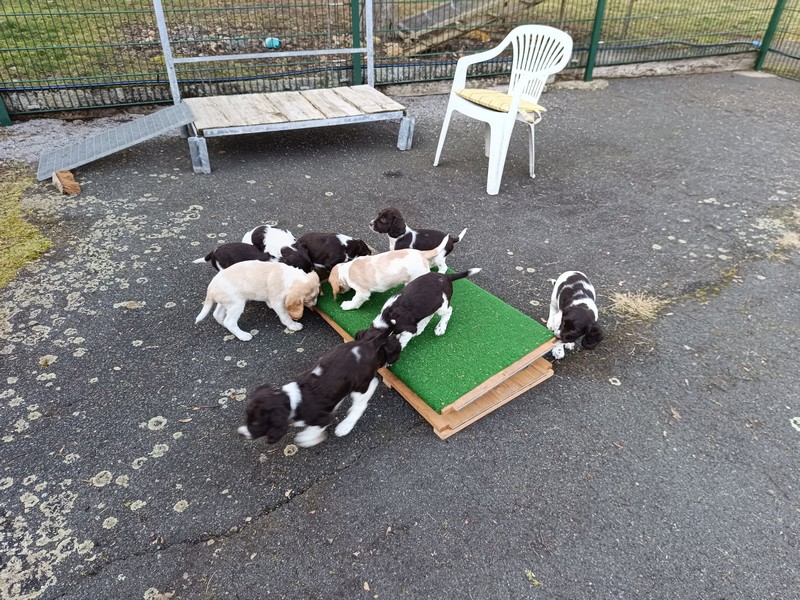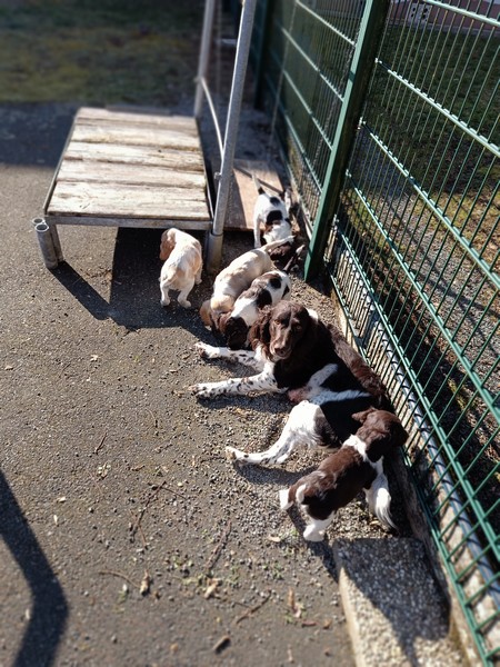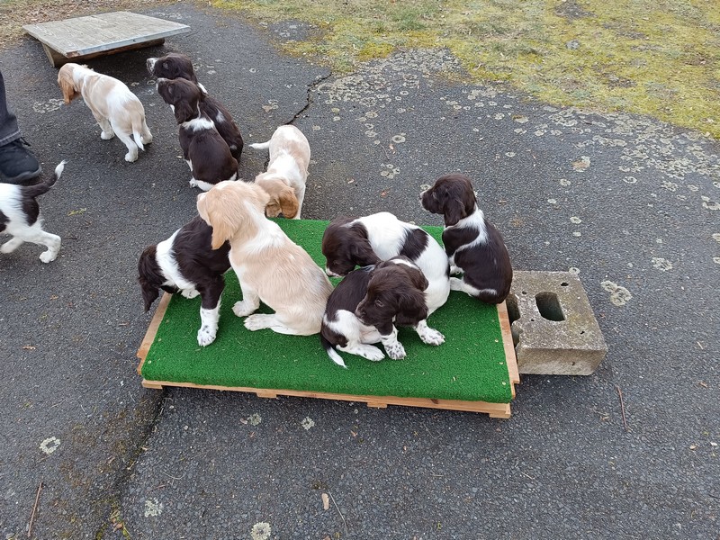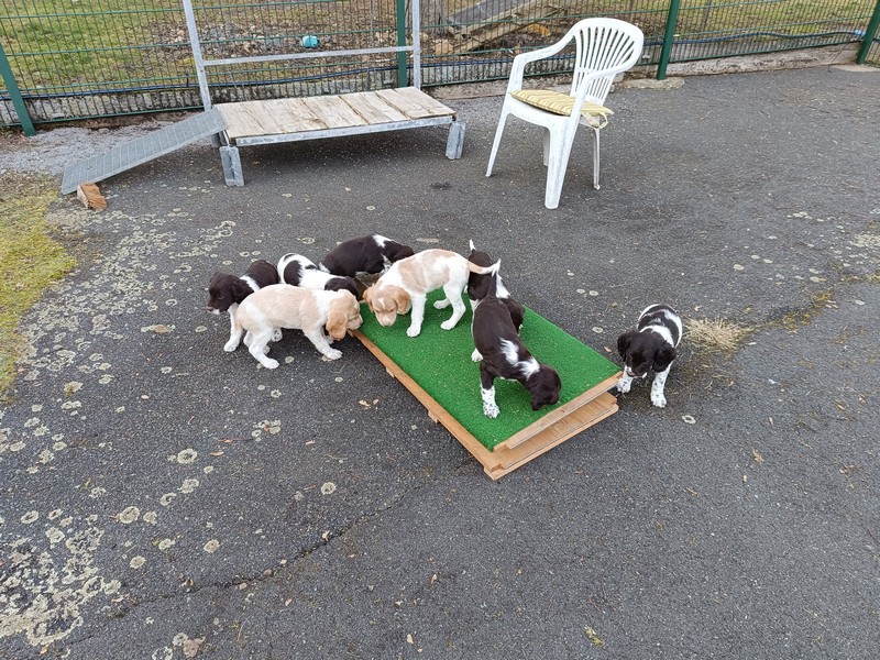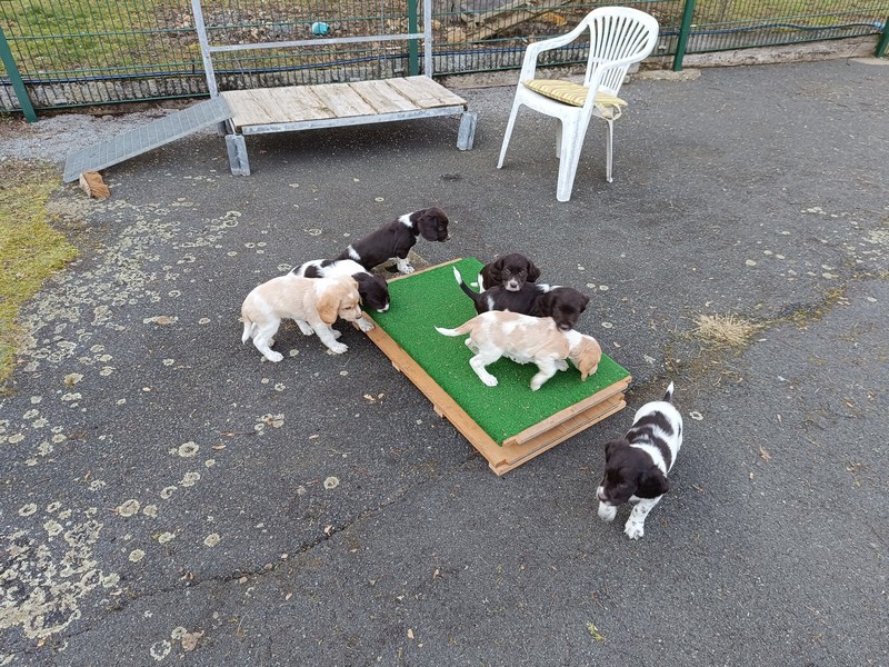 Heute sind die Welpen 7 Wochen alt geworden und Papa Zaron kam zu Besuch.