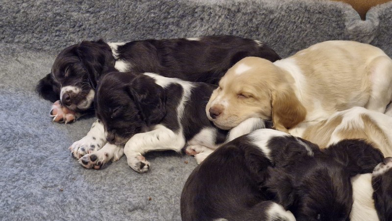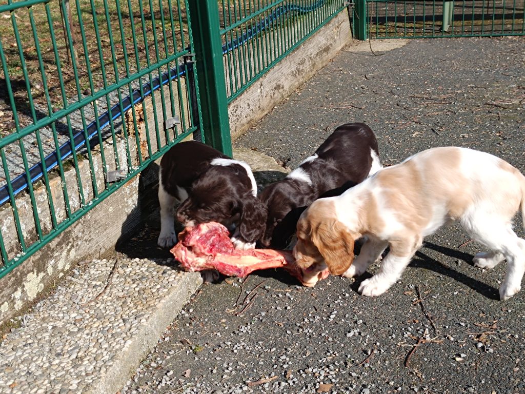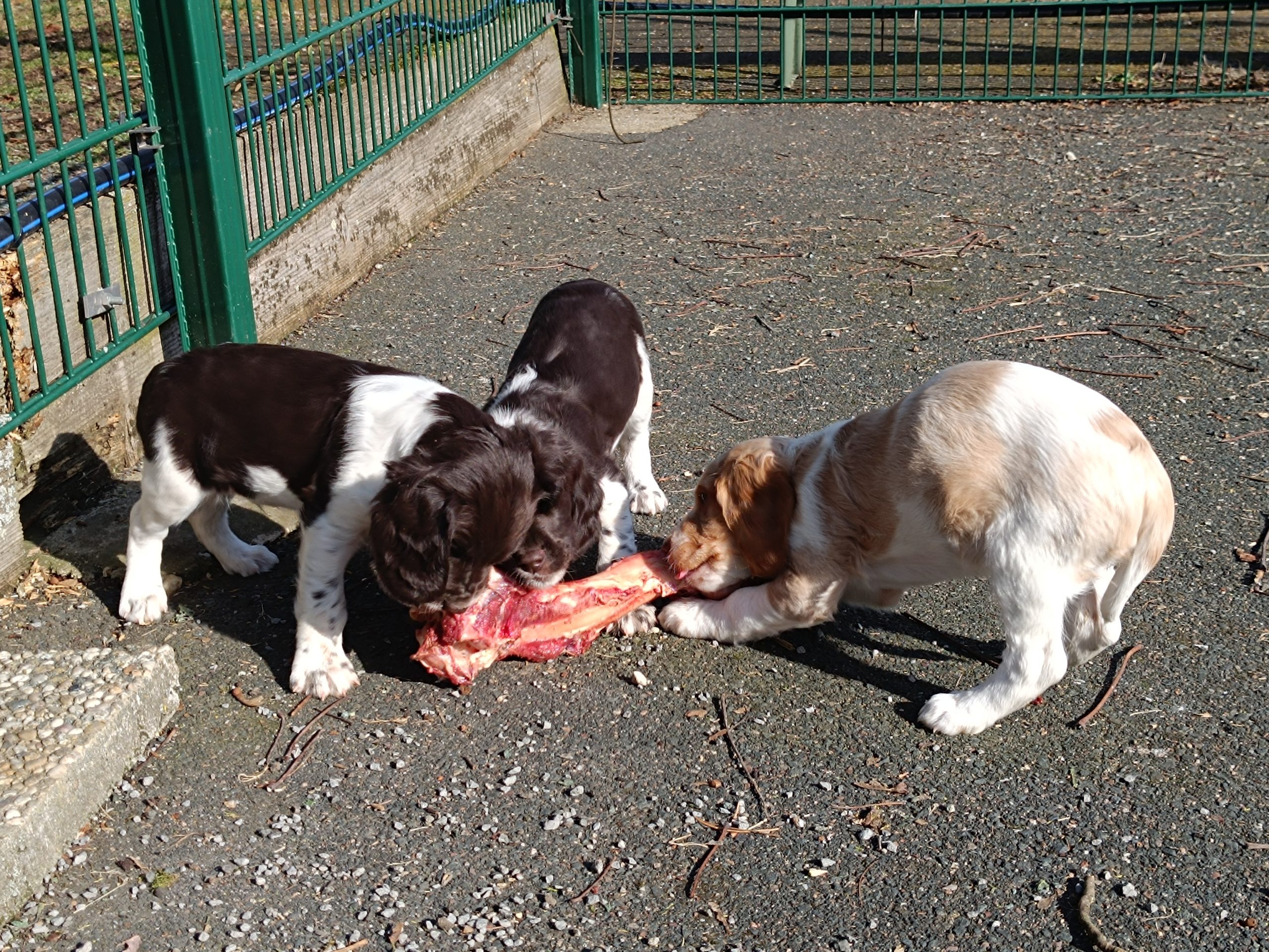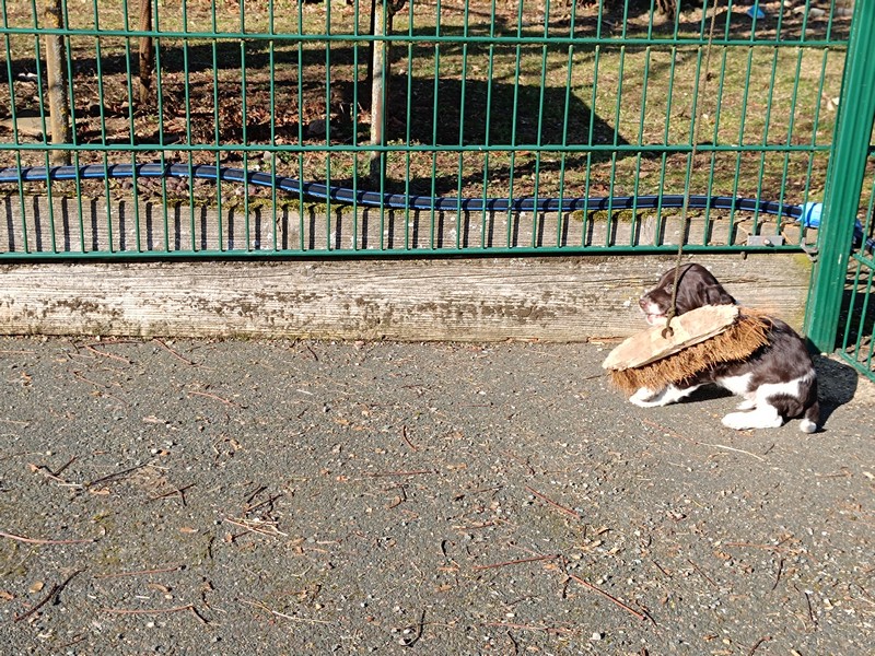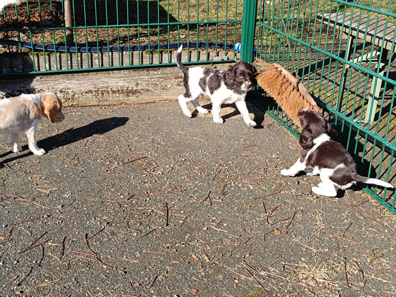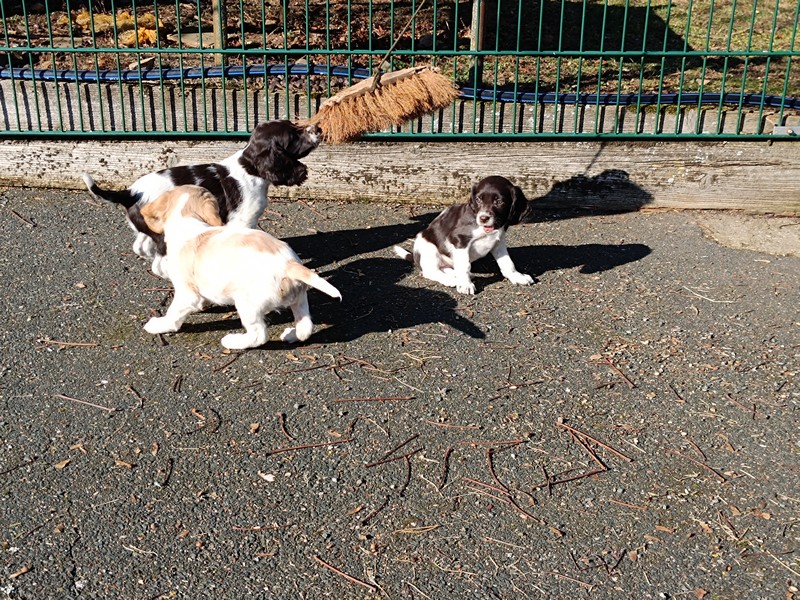 Bevor der nächste Besuch kommt, muss wieder einmal Hausputz gehalten werden – während die Welpen ihr Mittagessen bekommen. Die ersten sind schnell zurück und untersuchen das interessante Teil was auch noch Geräusche macht.