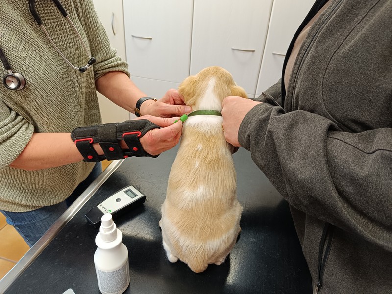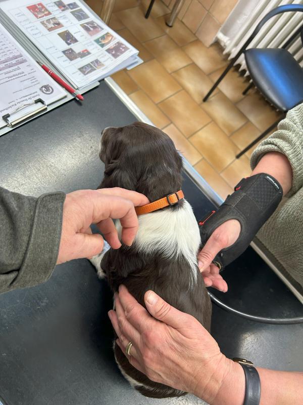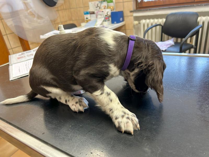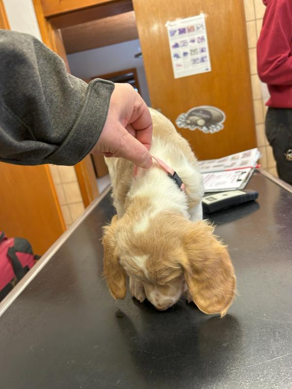 Einer nach dem anderen kam auf den Tisch zu einer kurzen Untersuchung und dann die erste Mehrfachimpfung. Danach wurde noch der Microchip gesetzt und schon war der nächste an der Reihe. Die Welpen haben es gelassen ertragen, nur einer hat ein wenig protestiert.